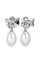 PETUN - en ørering, der har en barok hvid imitationsperle under en topdel, rigt sat med små krystaller i et asymmetrisk mønster. Klassisk med et twist. Korpus er lavet af poleret messing, og ørenkrogen er lavet af kirurgisk stål. Total længde cirka 28 mm. Vist her med klare krystalleri og sølvfinish. DANSK DESIGN - fri for cadmium, bly og nikkel.